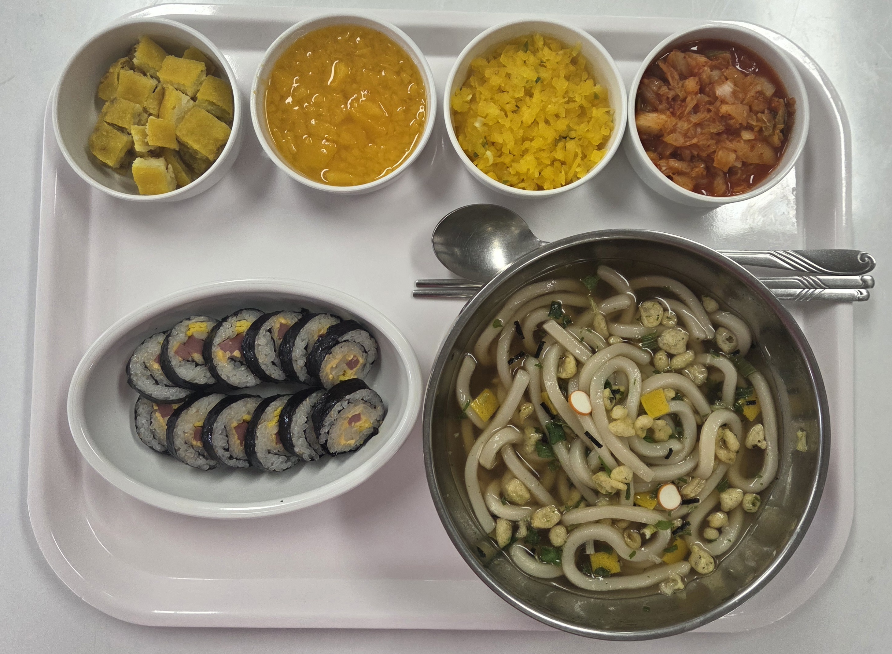 어르신들의 기분을 전환시켜 드리고 김밥을 드시고 싶다는 어르신의 요청에 의해 쉐프님을 초청하여 미니 김밥과 함께 우동을 대접해 드렸습니다.