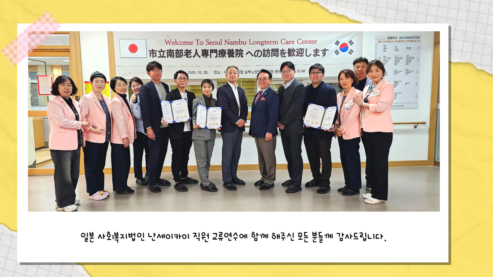 서울특별시립 남부노인전문요양원은 앞으로도 노인복지 발전과 글로벌 사회복지 네트워크 강화를 위해 지속적인 교류와 협력의 장을 만들어갈 계획입니다.
