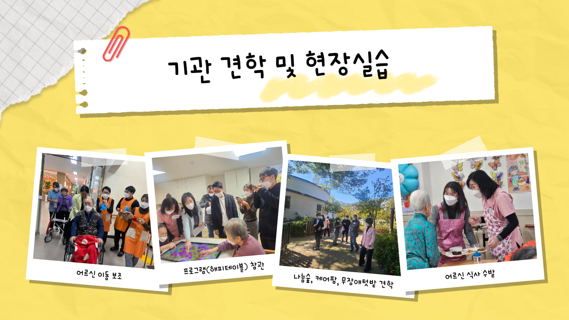 오리엔테이션을 시작으로 기관 소개와 시설 견학, 현장 실습 프로그램을 통해 한국의 돌봄 서비스 체계와 전문요양원의 운영 시스템을 직접 체험하였으며, 또한 문화탐방 프로그램을 통해 한국의 문화를 체험하며 교류의 폭을 넓혔습니다.