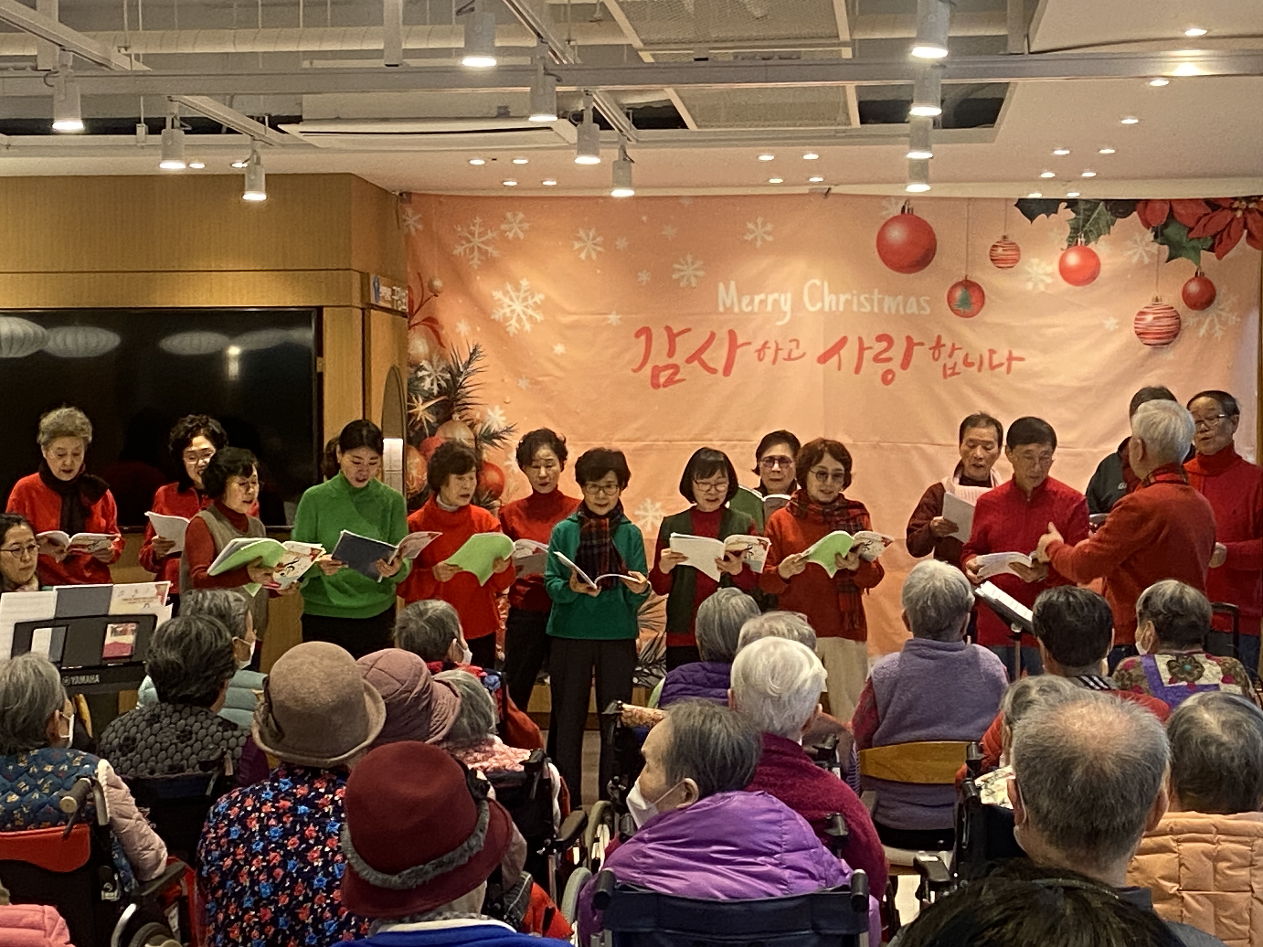 연말을 맞이하여 에버골든콰이어 합창단에서 따뜻한 노래 선물을 전해주셔서 어르신들과 함께 즐거운 시간을 보냈습니다.