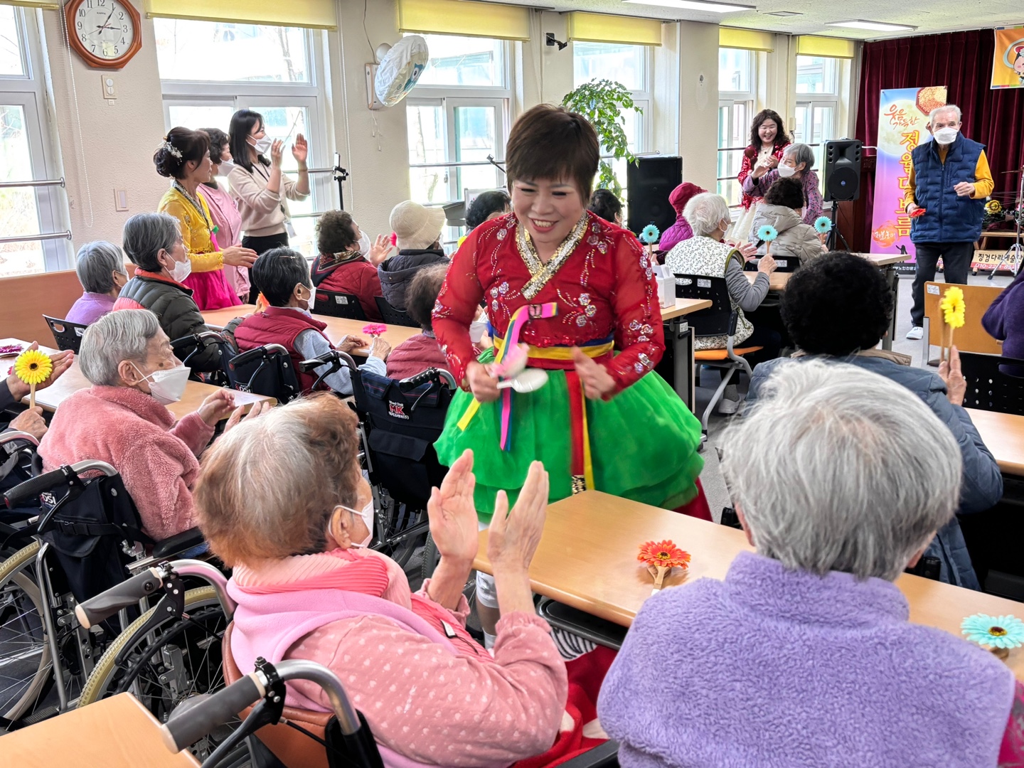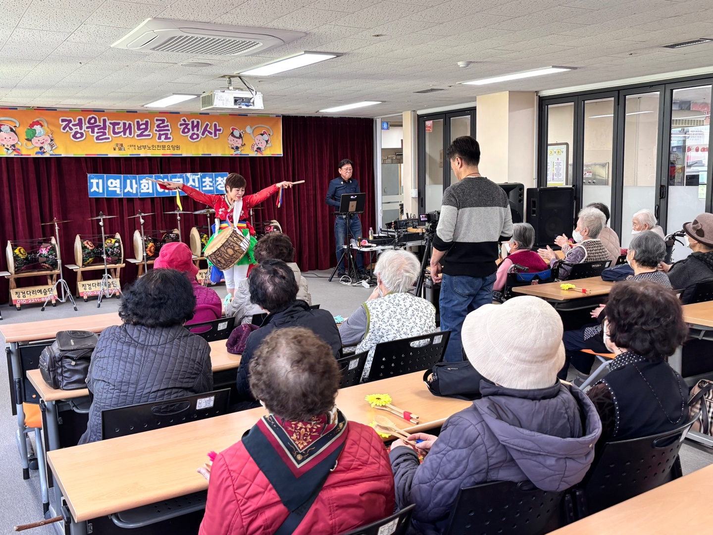 이번 행사는 지역 어르신들과 함께 전통의 의미를 나누는 뜻깊은 시간이었으며 공연단의 신명 나는 장구 연주와 흥겨운 노래가 어우러져 어르신들께 큰 즐거움을 드렸으며, 자연스럽게 박수와 웃음이 이어지는 따뜻한 분위기가 형성되었습니다.